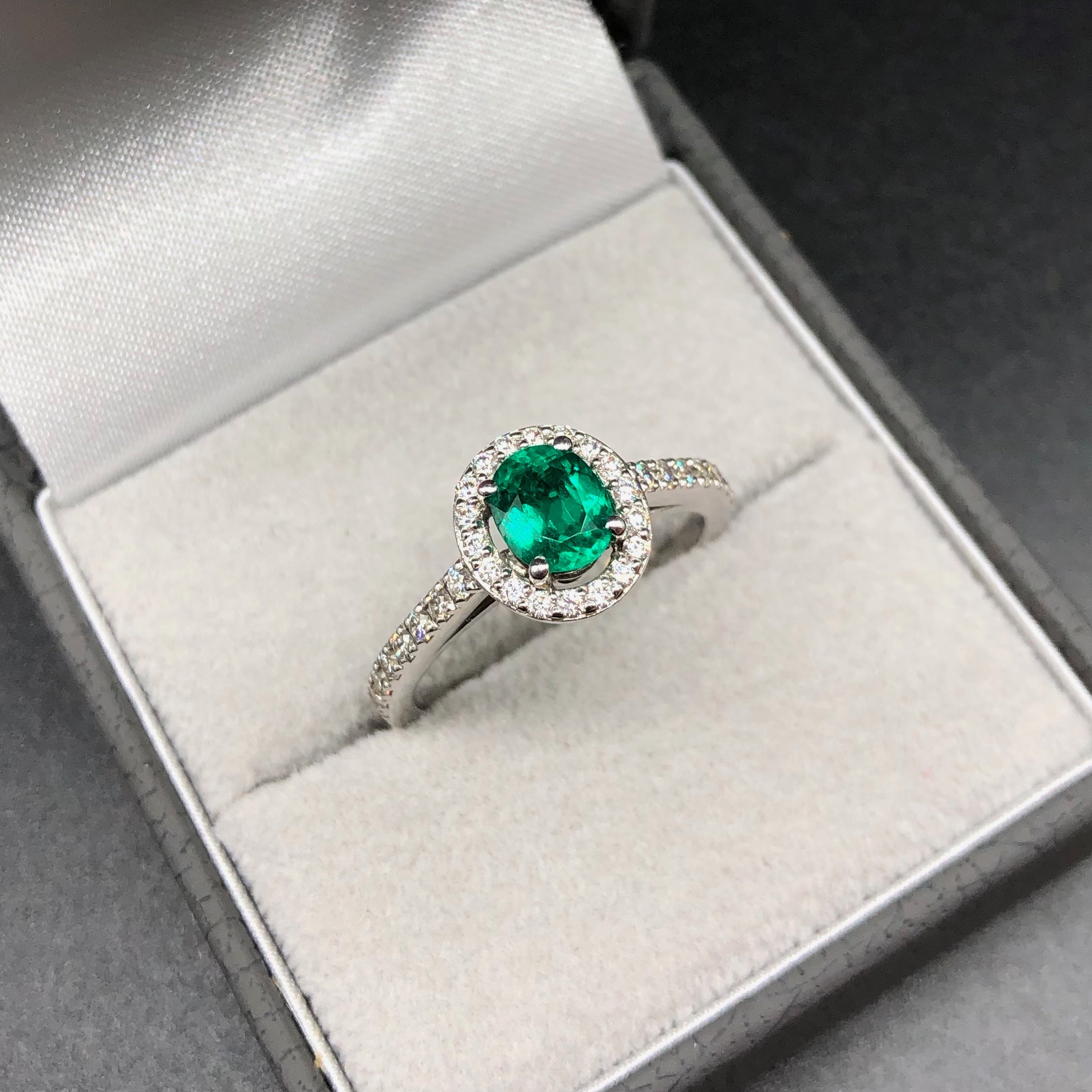 Bague Emeraude de Colombie taille ovale, Diamant.