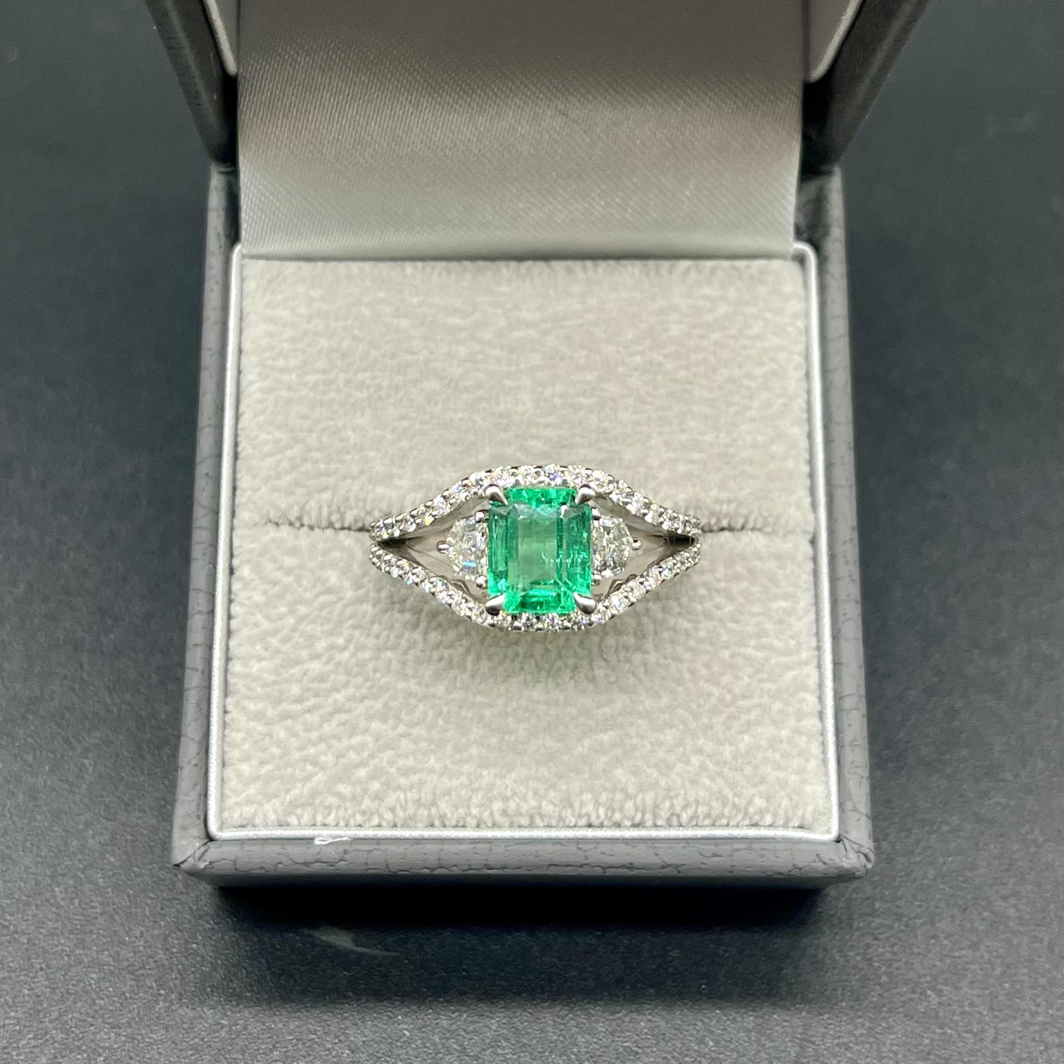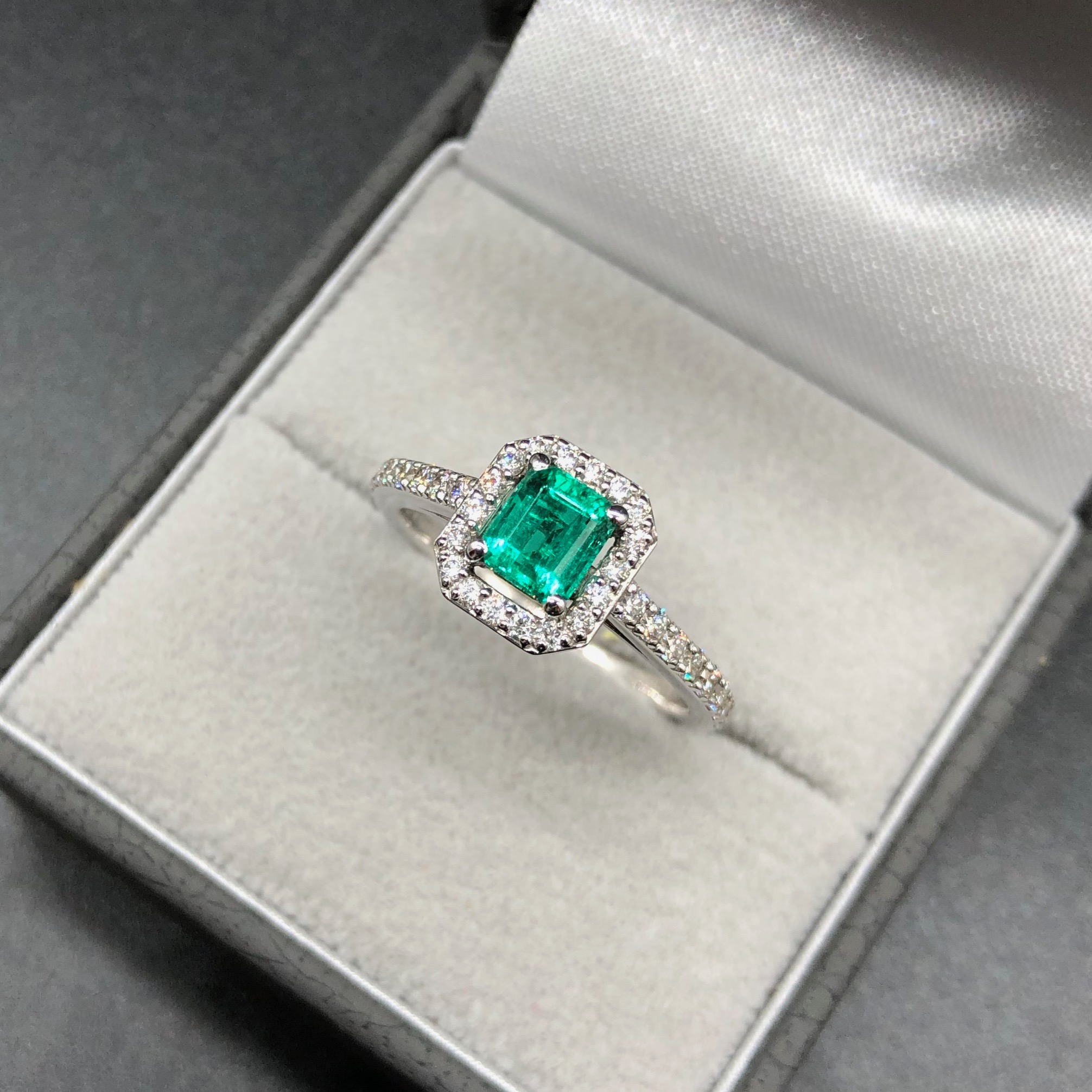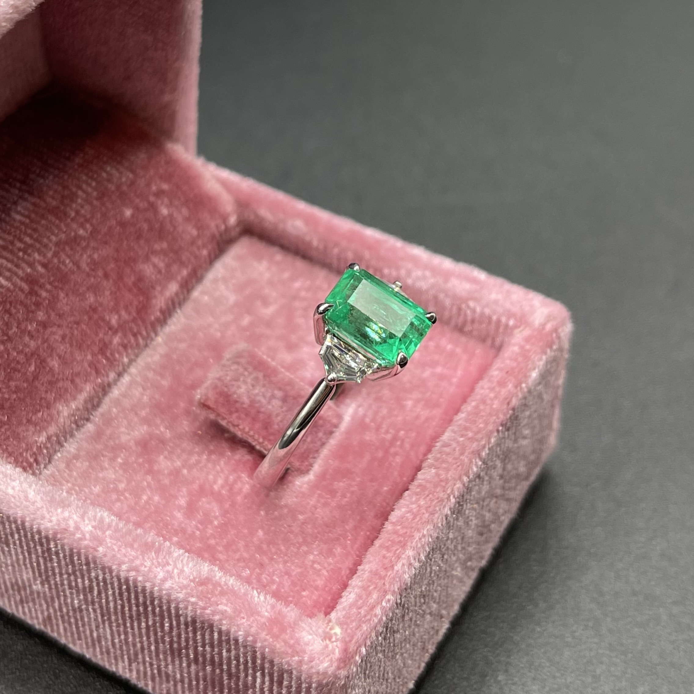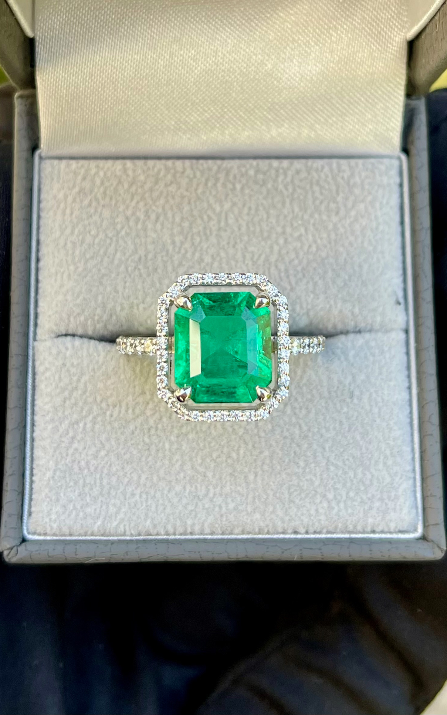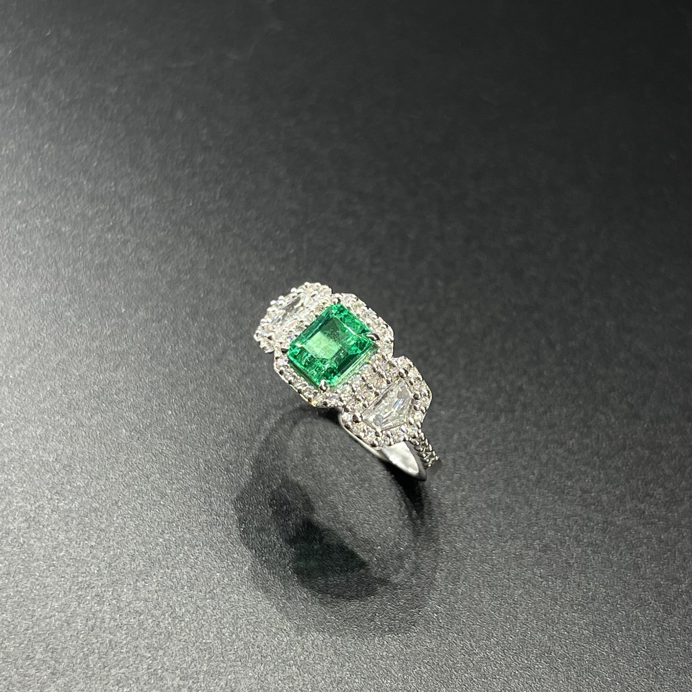 Bague Emeraude de Colombie, taille Emeraude, Diamant.