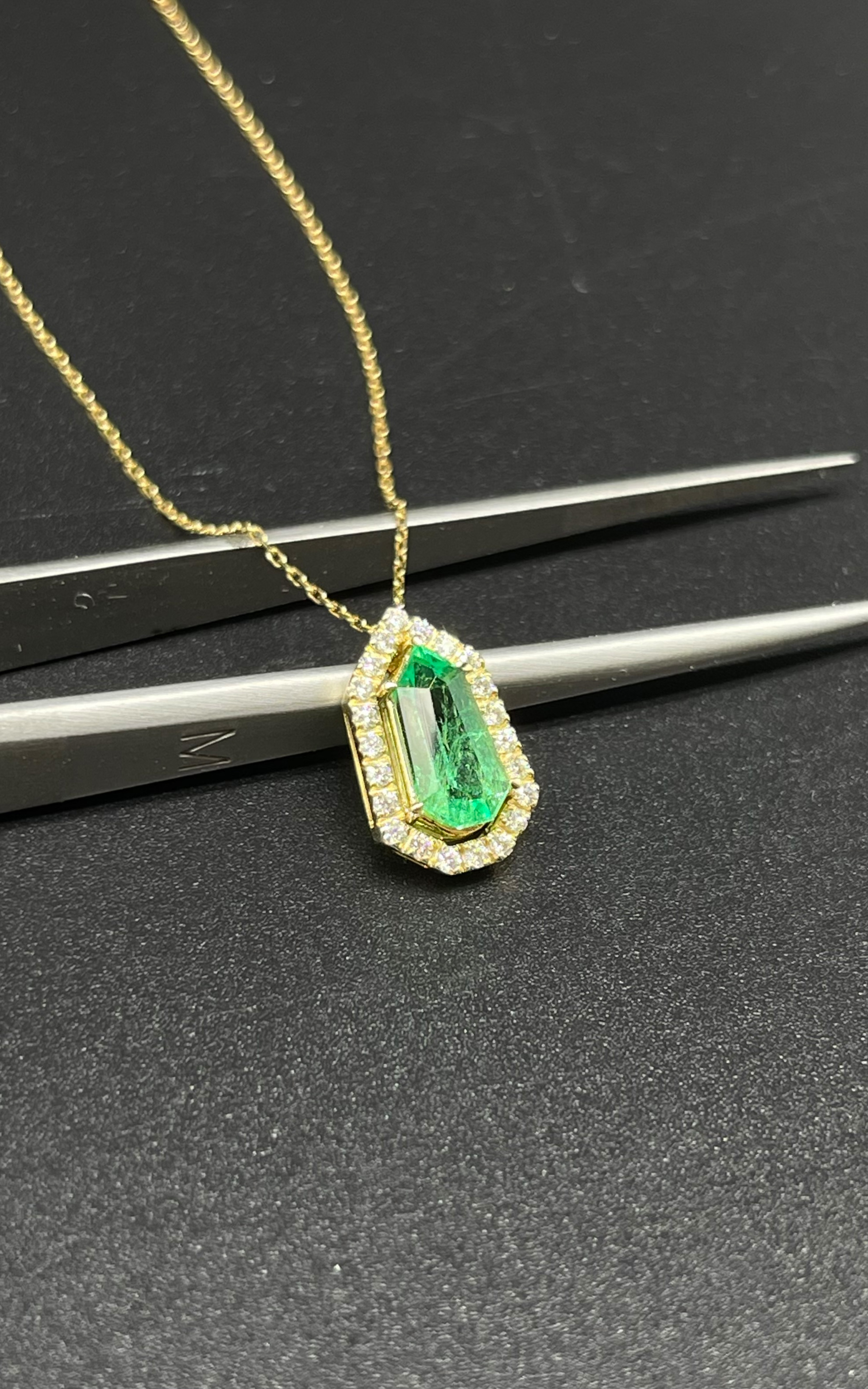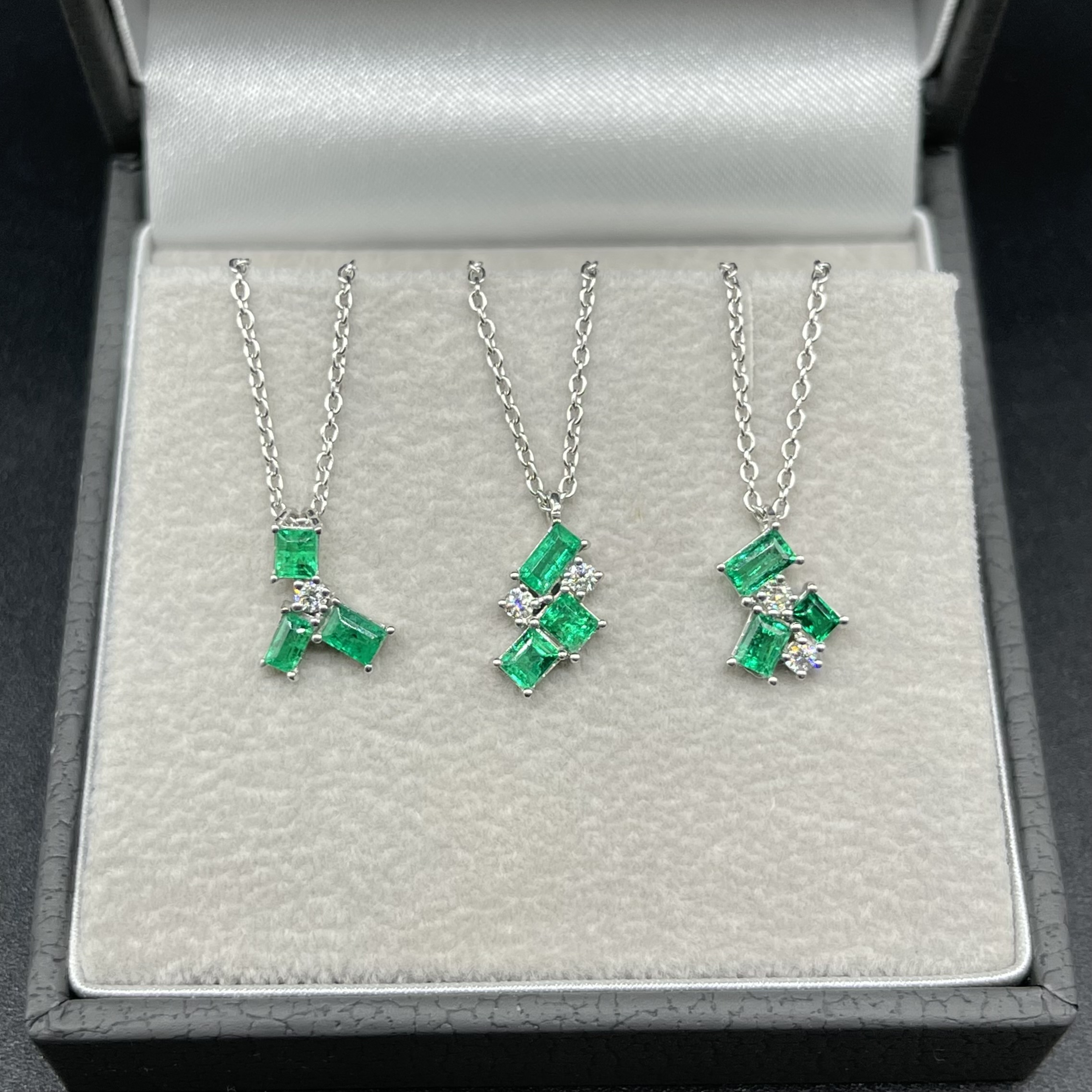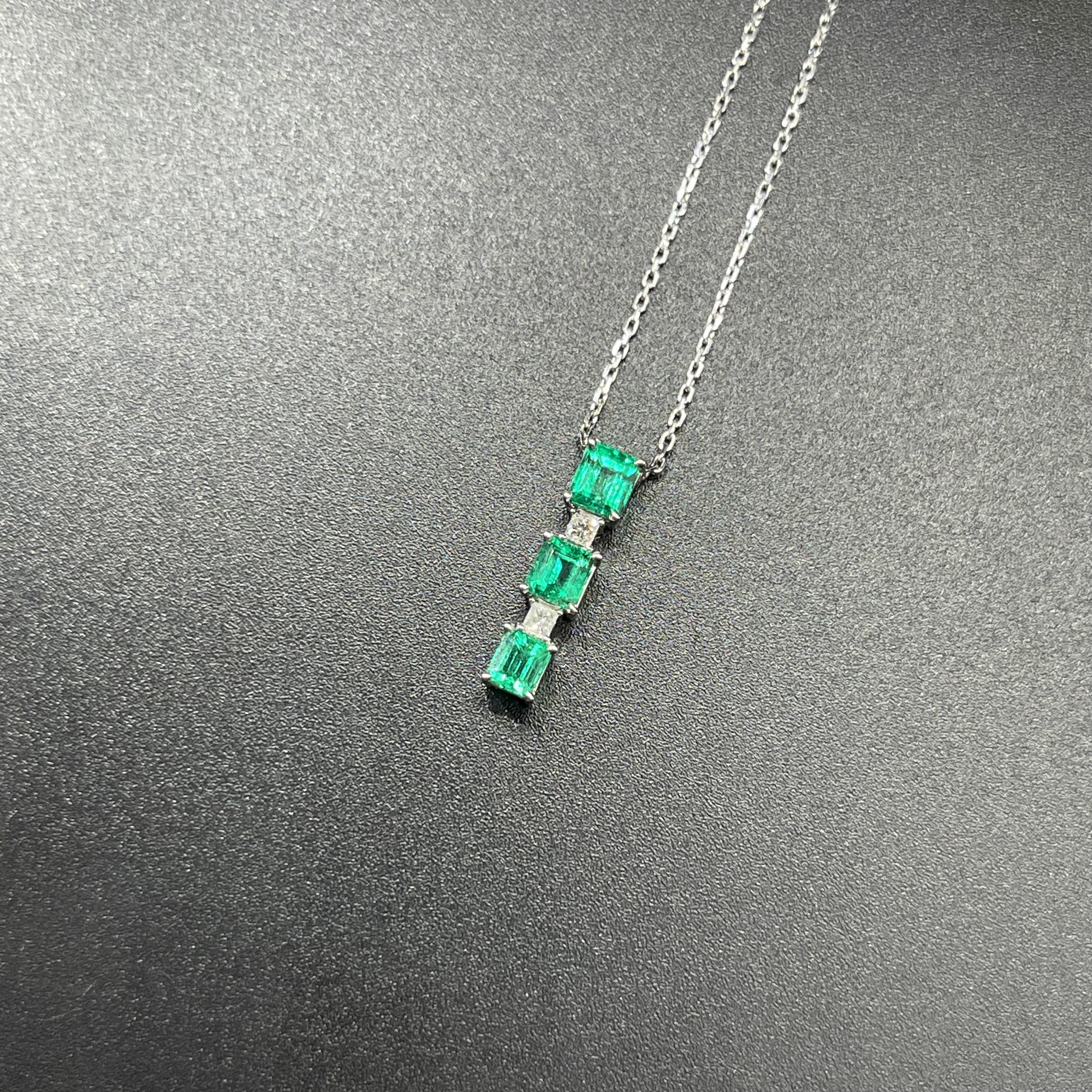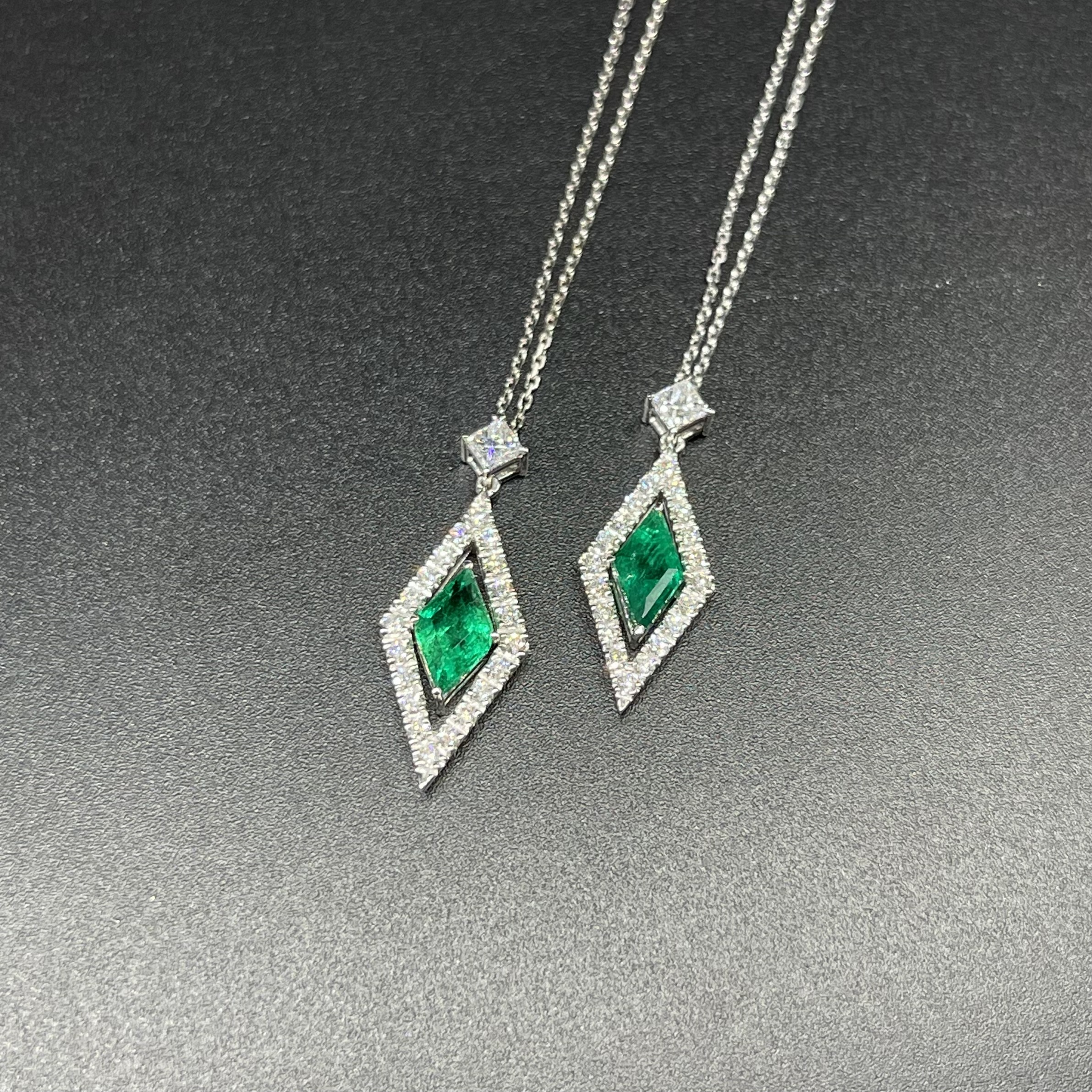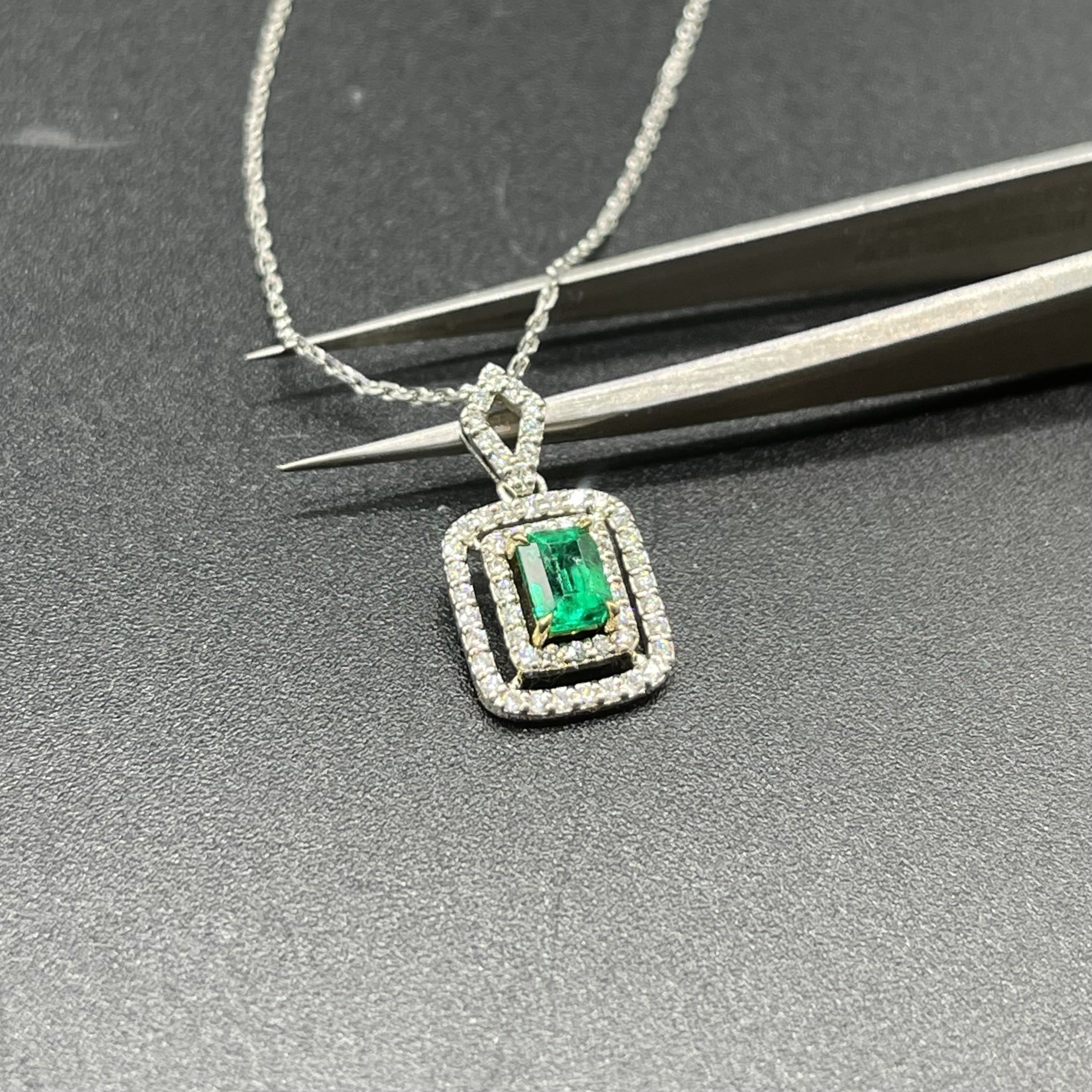 Pendentif Emeraudes de Colombie taille Emeraude et Diamants taille Princesse.