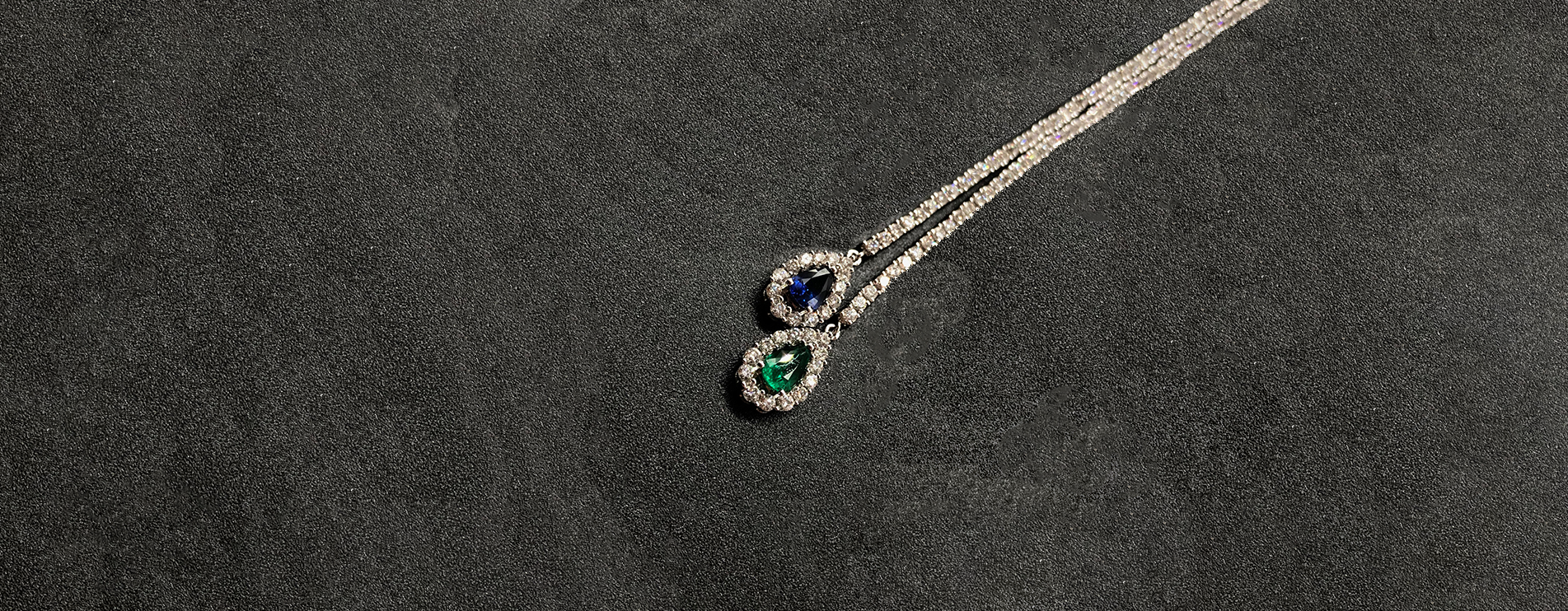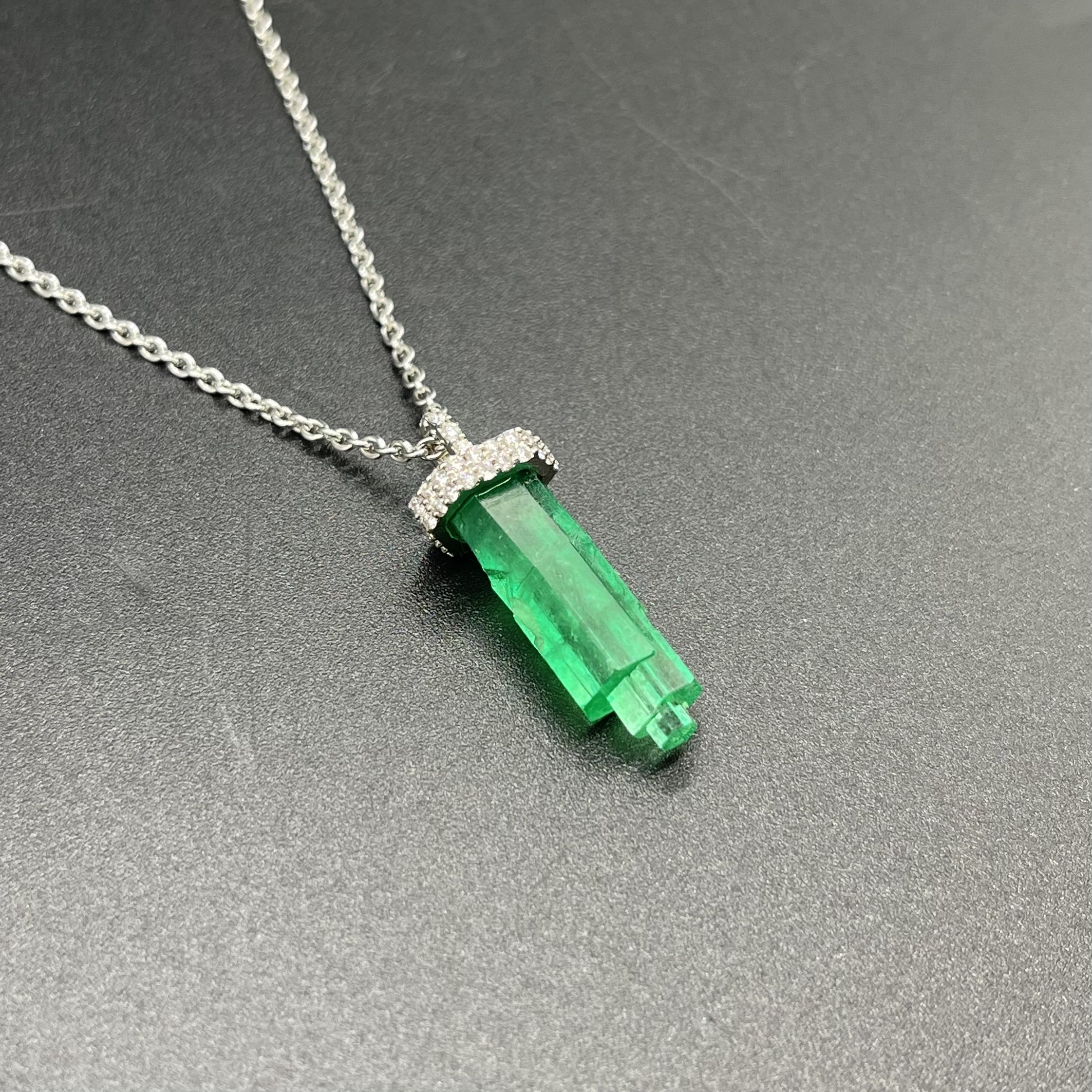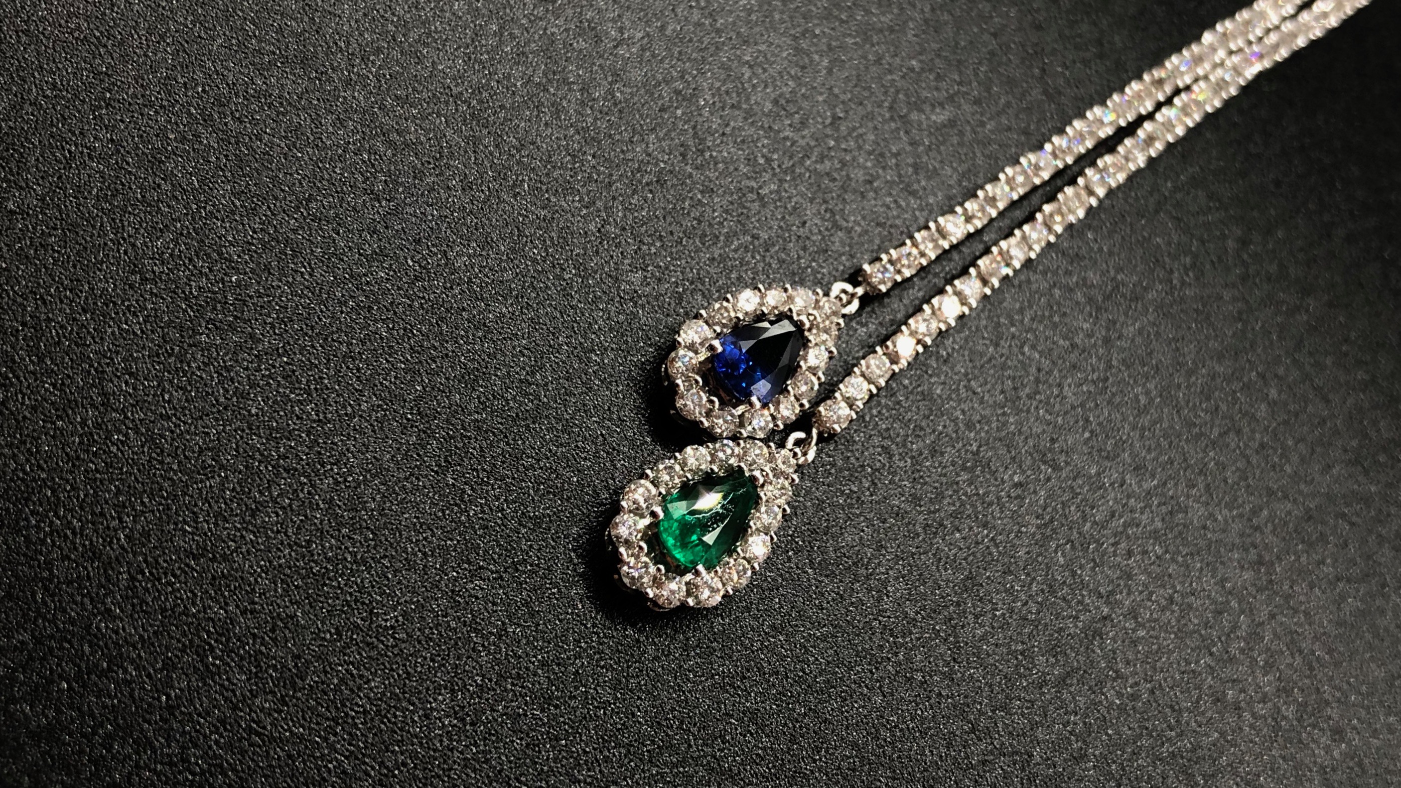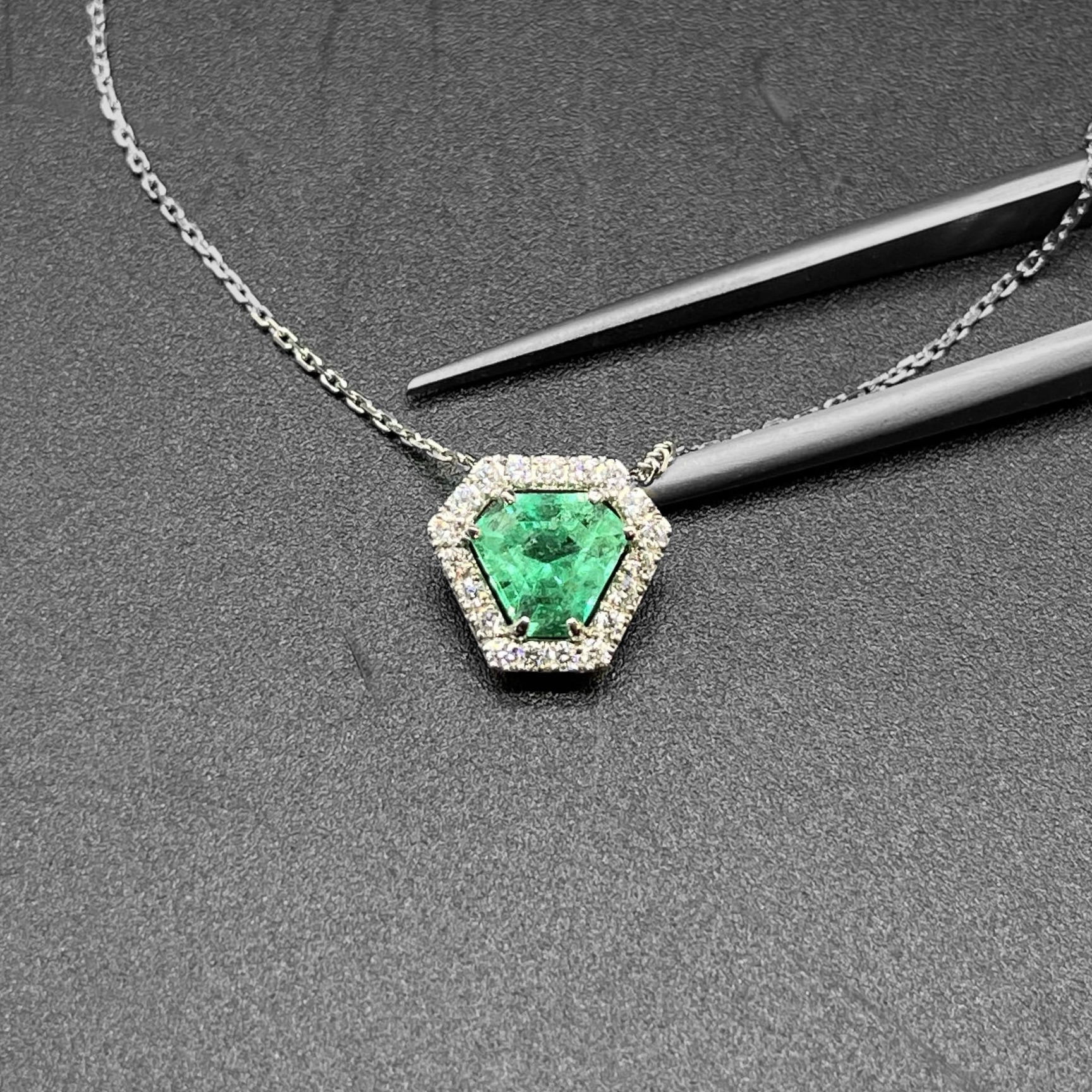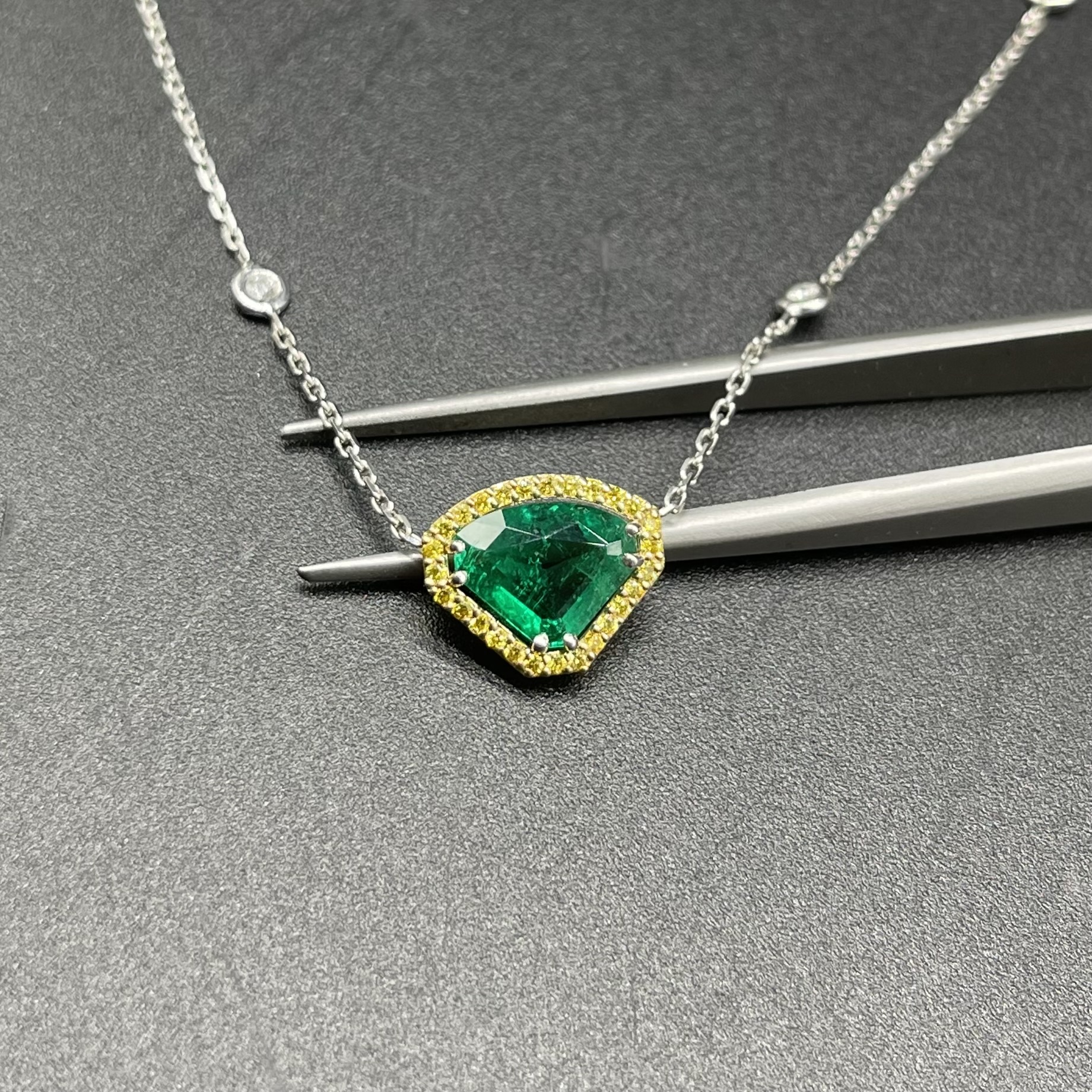 Pendentif Emeraudes de Colombie taille Emeraude et Diamants taille Princesse.
