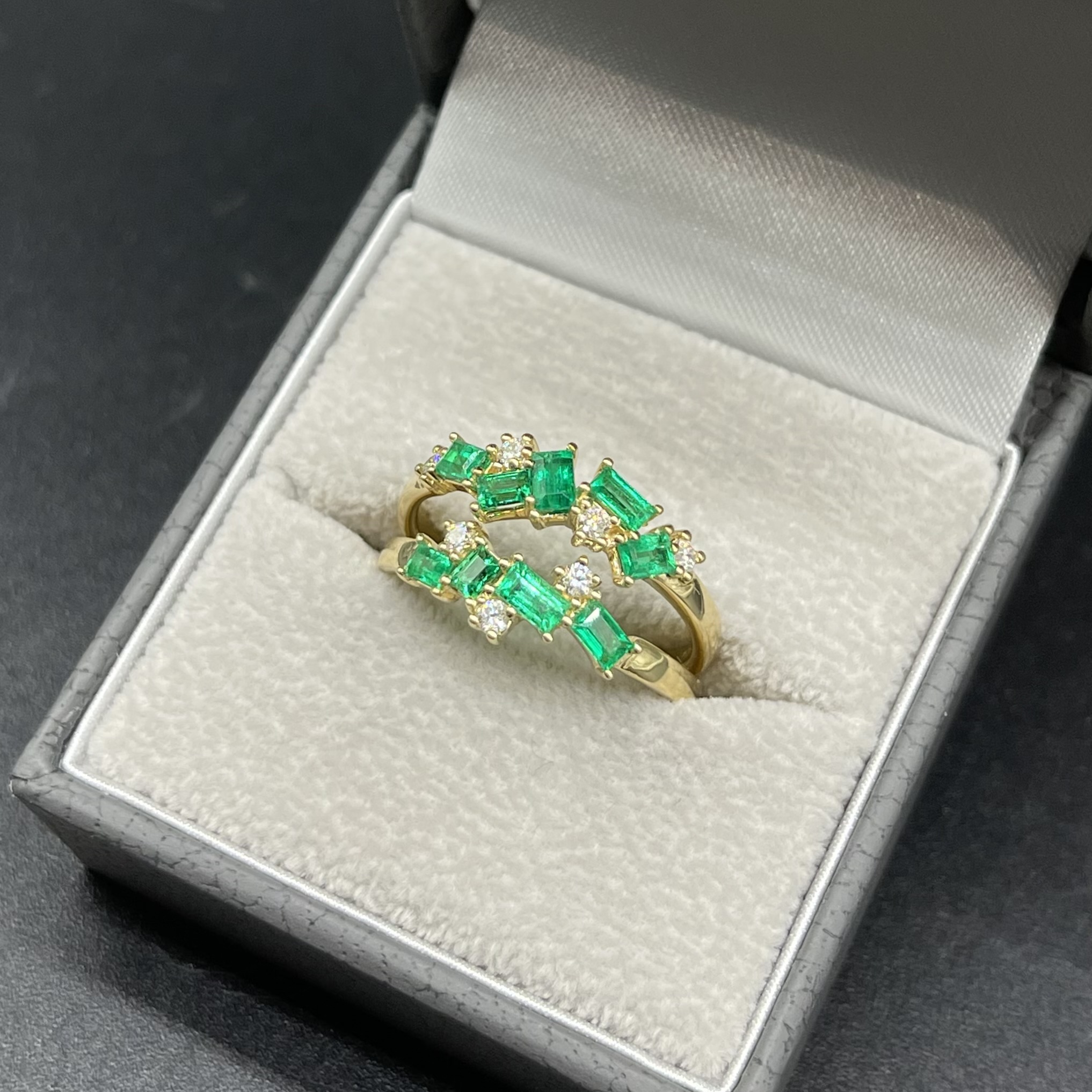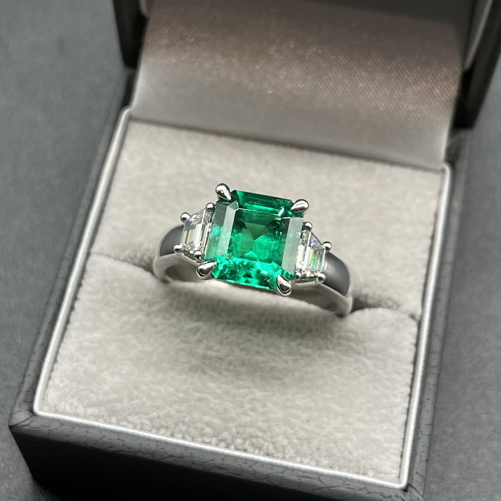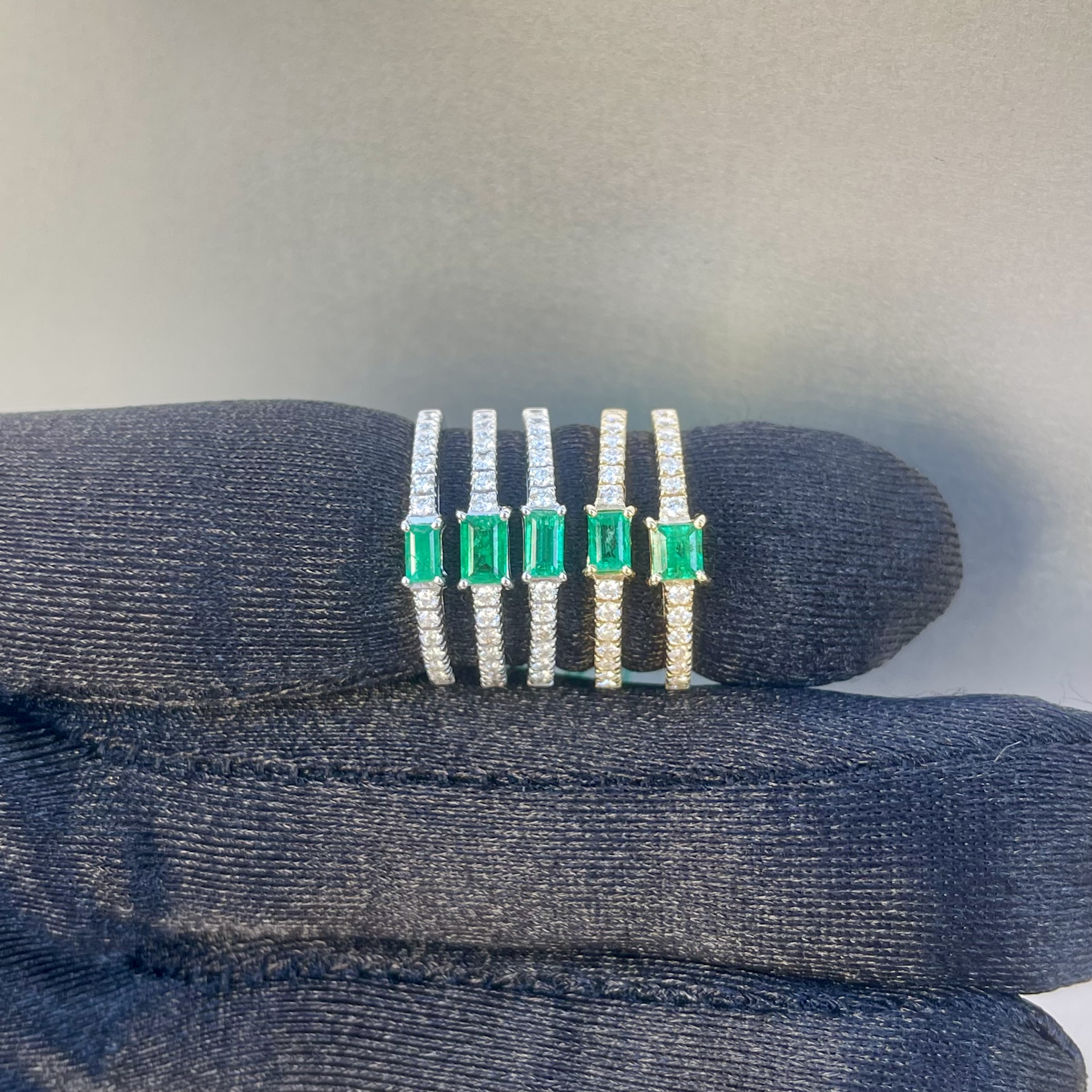 Bagues Emeraudes de Colombie taille baguette et Diamants.