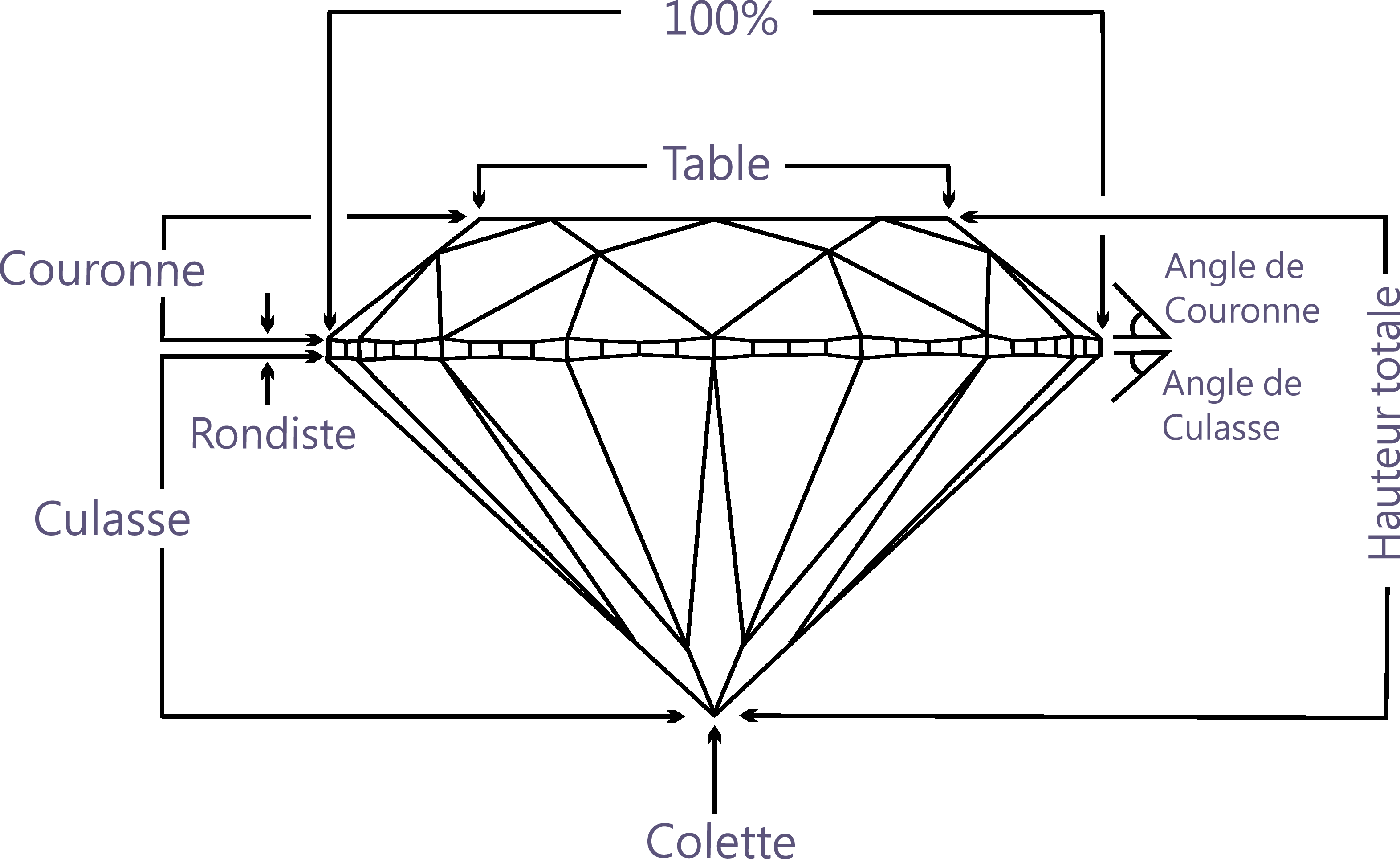 De bonnes proportions sont indispensables pour assurer au diamant sa brillance et son « feu ».
